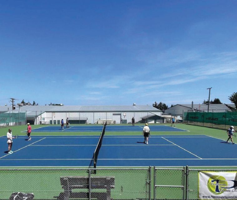 The Peninsula Tennis Club (PTC) is celebrating its 25th Anniversary this spring. A small group of 20 keen tennis enthusiasts met in the year 2000 and formed a formal club. Founding members included president Tony Ginley, treasurer Jim Black and secretary Linda Terrell and included a membership of 60 players. Many of our original members are still partcipating and enjoying Club today! The Tennis Club is run solely by volunteers. The PTC plays at the Panorama Recreation Centre, where it has the use of some indoor tennis hard courts and two outdoor courts.
